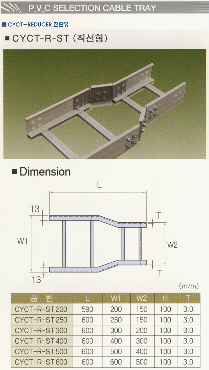 [CY] °í°­µµ PVCÄÉÀÌºí Æ®·¹ÀÌ Á÷¼± ·¹µà»þ(CYCT-R-ST,Á÷¼± ·¹µà»þ,»çÀÌÁî ¼±Åð¡´É)(PVC Cable Tray Reducer Accessory)