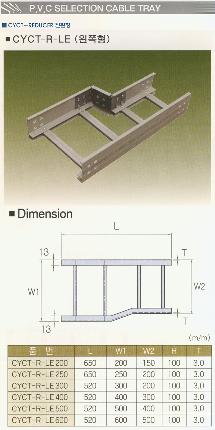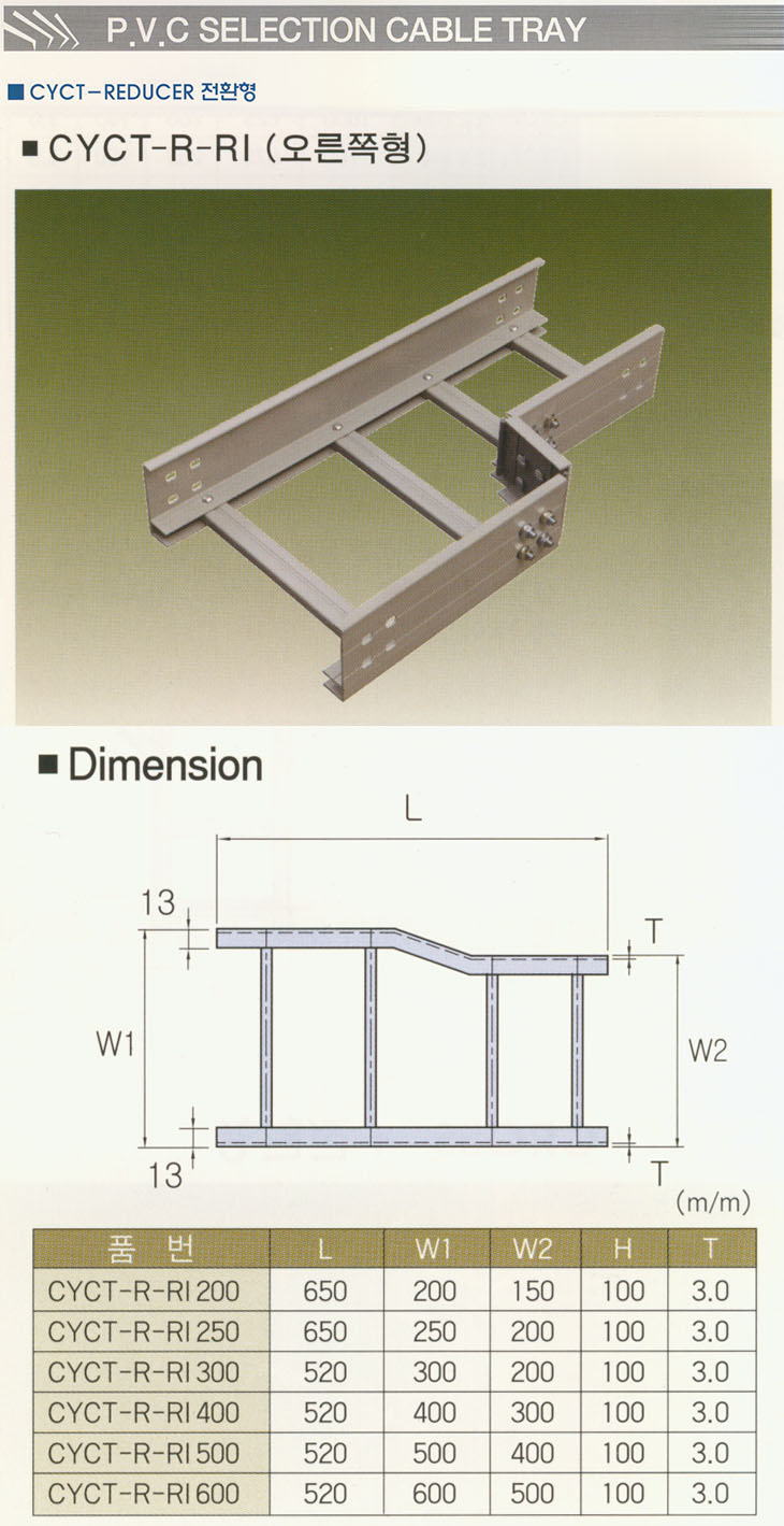 [CY] °í°­µµ PVCÄÉÀÌºí Æ®·¹ÀÌ ·¹µà»þ(CYCT-R-RI/LE,·¹µà»þ,»çÀÌÁî ¼±Åð¡´É)(PVC Cable Tray Reducer Accessory)