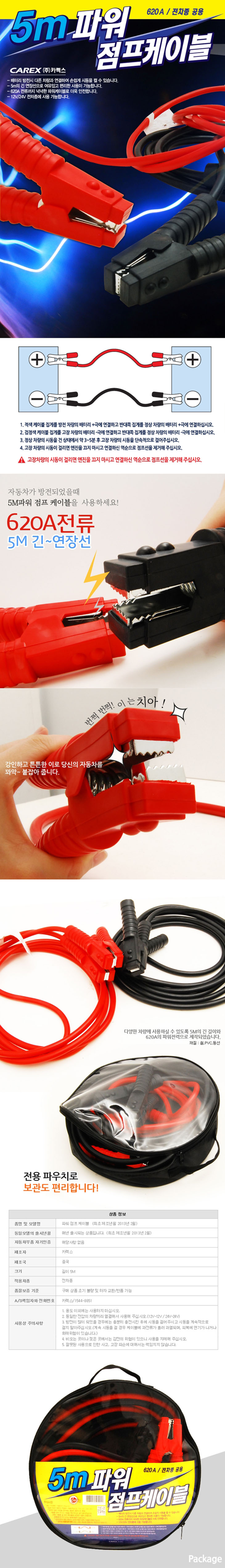 [KC]´ë¿ë·®/ÀüÂ÷Á¾ Á¡ÇÁÄÉÀ̺í(620AMP,5.0¹ÌÅÍ,12V/24V°â¿ë,Á¡ÇÁ¼±)(Emergency Jump Cable)