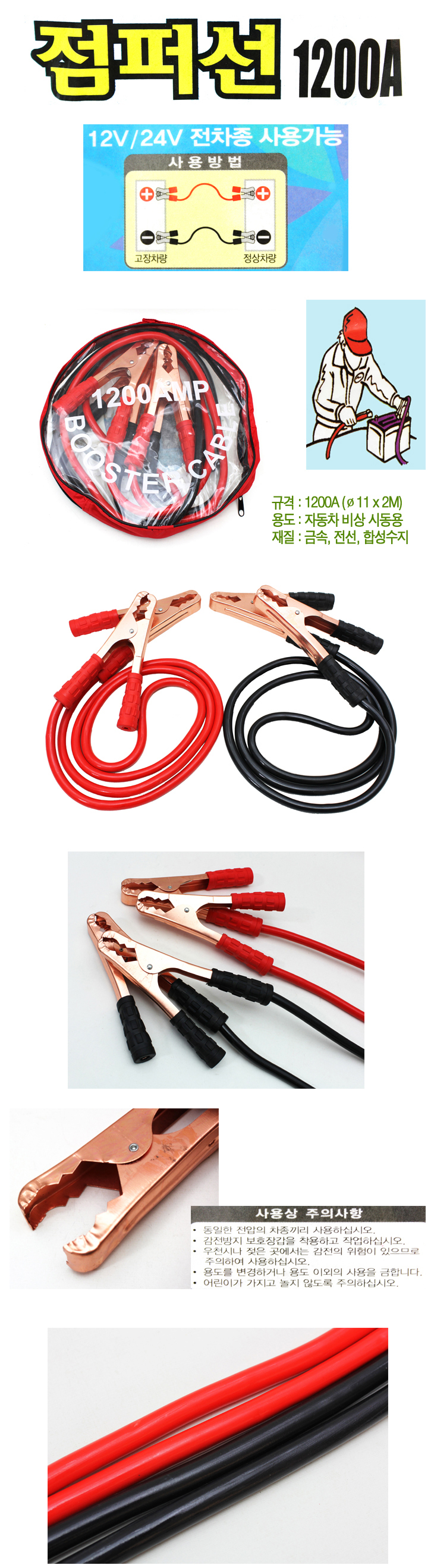 [SA]´ë¿ë·®/ÀüÂ÷Á¾ Á¡ÇÁÄÉÀ̺í(1200AMP,2.0¹ÌÅÍ,12V/24V°â¿ë,Á¡ÇÁ¼±)(Emergency Jump Cable)
