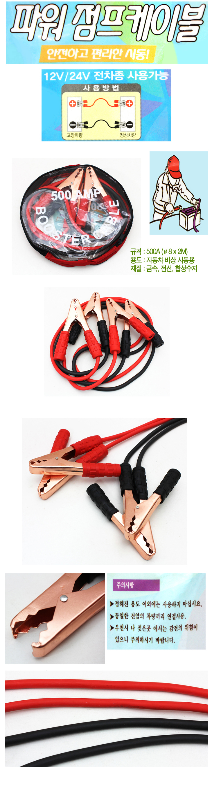 [SA]´ë¿ë·®/ÀüÂ÷Á¾ Á¡ÇÁÄÉÀ̺í(500AMP,2.0¹ÌÅÍ,12V/24V°â¿ë,Á¡ÇÁ¼±)(Emergency Jump Cable)