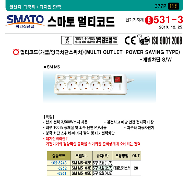 [½º¸¶Åä] ¸ÖƼÅÇ/¸ÖƼÄÚµå/¸ÖƼÄܼ¾Æ® °³º°/¾ç±ØÂ÷´Ü½ºÀ§Ä¡ 5±¸(Multi Outlet-Power Saving Type) 5±¸5È£ 4.5¹ÌÅÍ