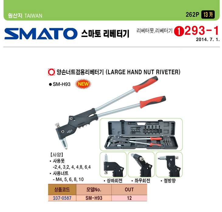 [SMATO] ¾ç¼Õ ³ÊÆ® °â¿ë ¸®º£Åͱâ(SM-H93,M4/M5/M6/M8/M10,2.4/3.2/4.0/4.8/6.4mm)(Large Hand Nut Riveter)