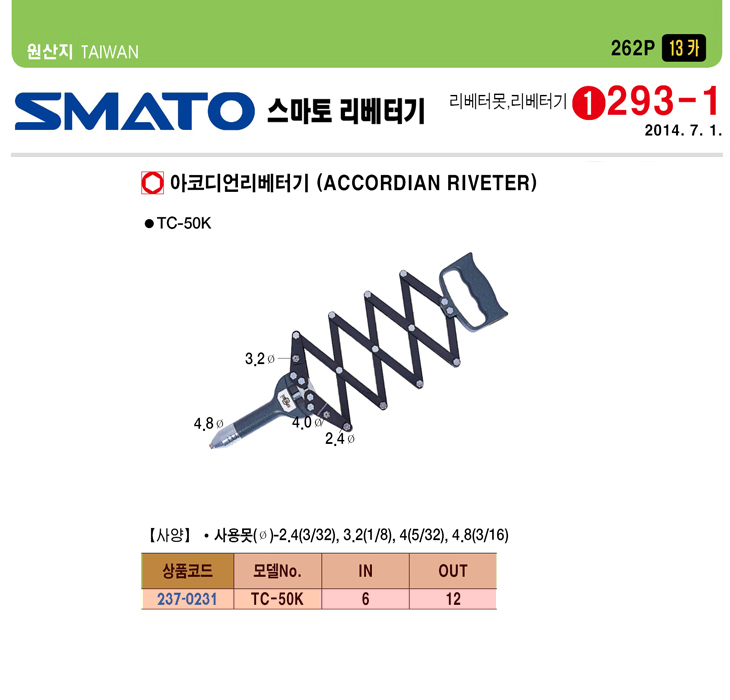 [SMATO] ¾ÆÄÚµð¾ð ¸®º£Åͱâ(TC-50K,2.4/3.2/4.0/4.8)(Accordian Riveter)