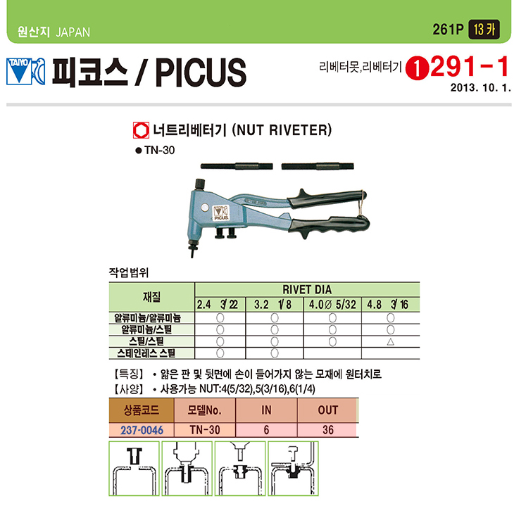 [PICUS] ³ÊÆ® ¸®º£Åͱâ(TN-30,M4/M5/M6,ȸÀüÇìµå)(Nut Riveter)
