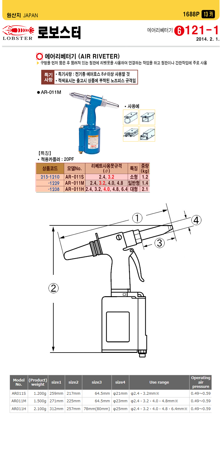 [LOBSTER] ¿¡¾î ¸®º£Åͱâ(AR-011M,2.4/3.2/4.0/4.8mm)(Air Riveter)