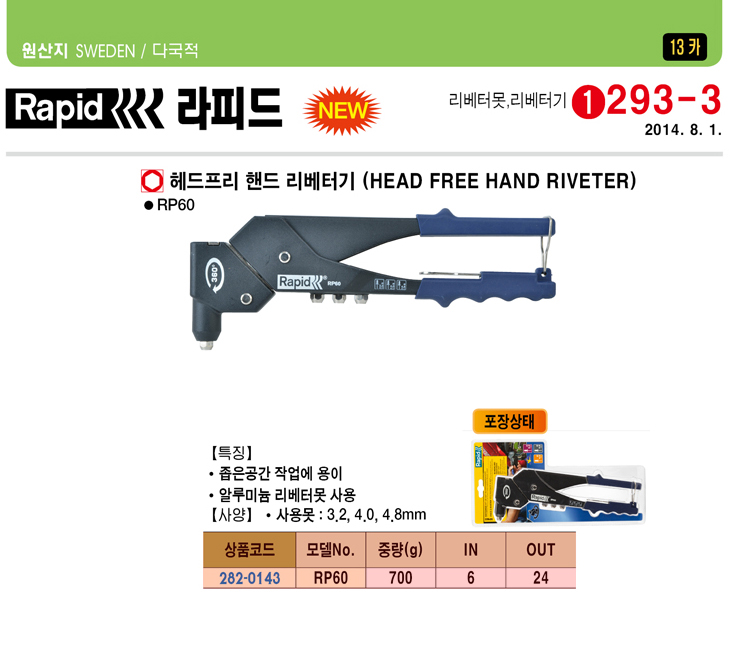 [Rapid] ÇìµåÇÁ¸® ÇÚµå ¸®º£Åͱâ(RP60,3.2/4.0/4.8mm)(Head Free Hand Riveter)