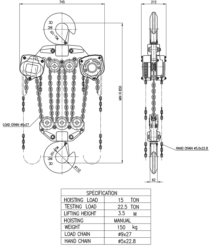 [´ë»ê] 15Ton üÀÎ ºí·°(ÁÖ¹®Á¦ÀÛ ¾à 10ÀÏ ¼Ò¿ä)(CHAIN BLOCK)