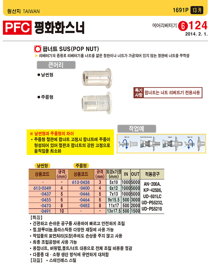 [ÆòÈ­È­½º³Ê] ÆË³ÊÆ® ½ºÅÙ·¹½º(Å«¸Ó¸®/³¯¾ÀÇü,SUS,M10,500°³ ¹­À½)(POP NUT)(ÁÖ¹®Àü Àç°í È®ÀÎ)