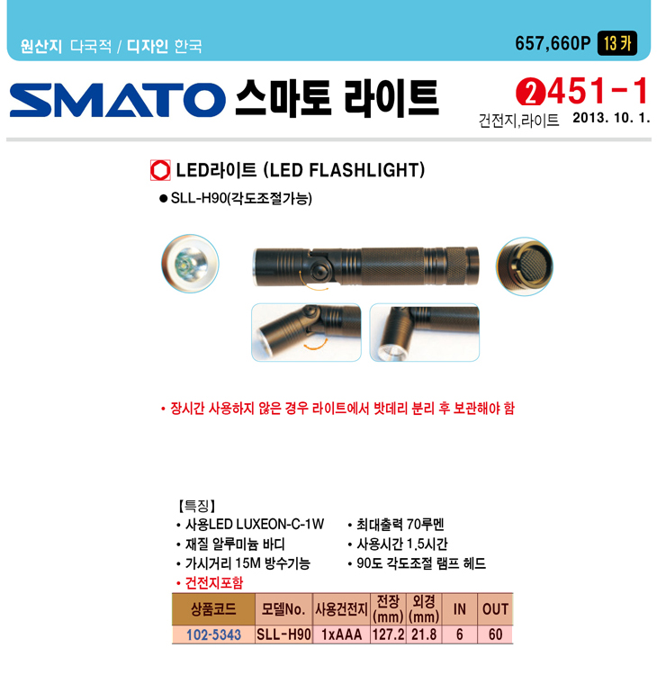 [½º¸¶Åä] LED ¶óÀÌÆ®(SLL-H90, °¢µµÁ¶ÀýÇü, 127.2x21.8mmmm)(LED FLASHLIGHT)