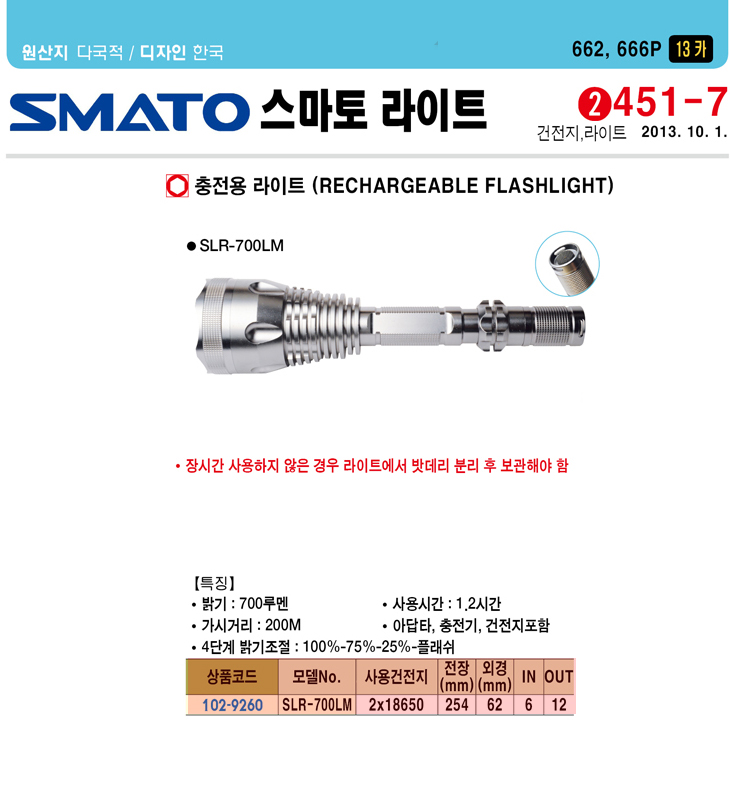 [½º¸¶Åä] LEDÃæÀü½Ä¶óÀÌÆ®(SLR-700LM, 700·ç¸à, 254x62mm)(LED RECHARGEABLE FLASHLIGHT)(ÁÖ¹®Àü Àç°íÈ®ÀÎ)