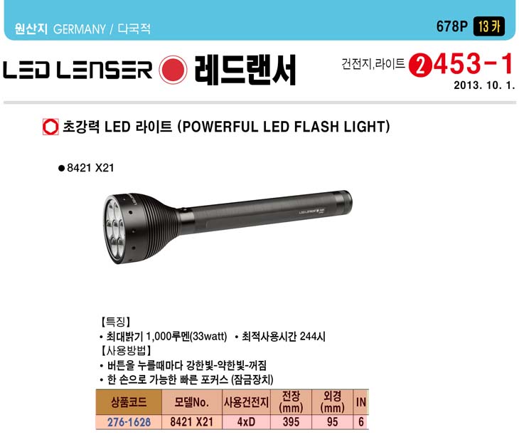 [·¹µå·£¼­] Ãʰ­·Â LED ¶óÀÌÆ®(8421 X21, Dx4°³, 395x95mm, 1000·ç¸à/33Watt)(Powerful LED Flashlight)