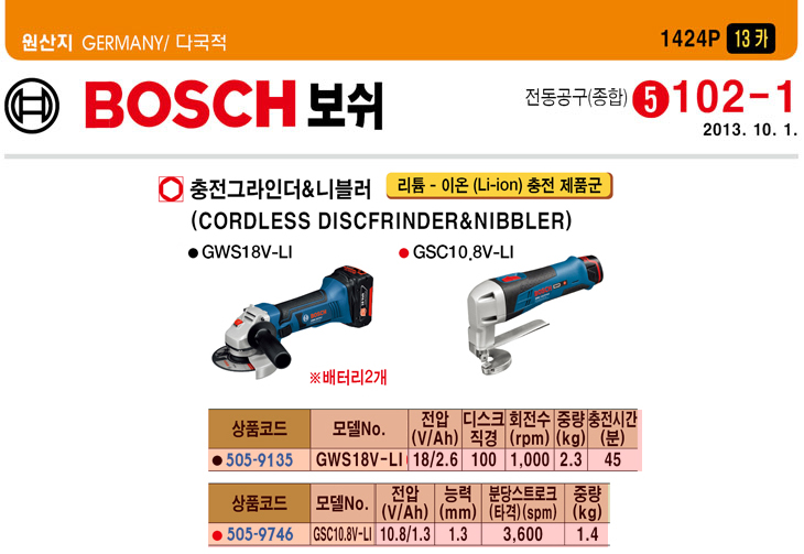 [BOSCH] ÃæÀü ±×¶óÀδõ(GWS 18V-Li, 18V/2.6Ah) (Cordless Disc Friender)