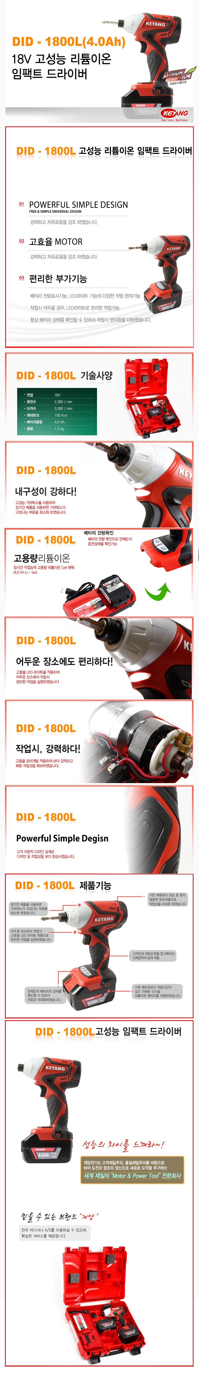 [°è¾ç] ÃæÀüÀÓÆÑµå¶óÀ̹ö(DID-1800L,18V/2.0Ah,¸®·ýÀ̿¹èÅ͸®)(ÁÖ¹®Àü Àç°íÈ®ÀÎ)(Cordless Impact Driver)