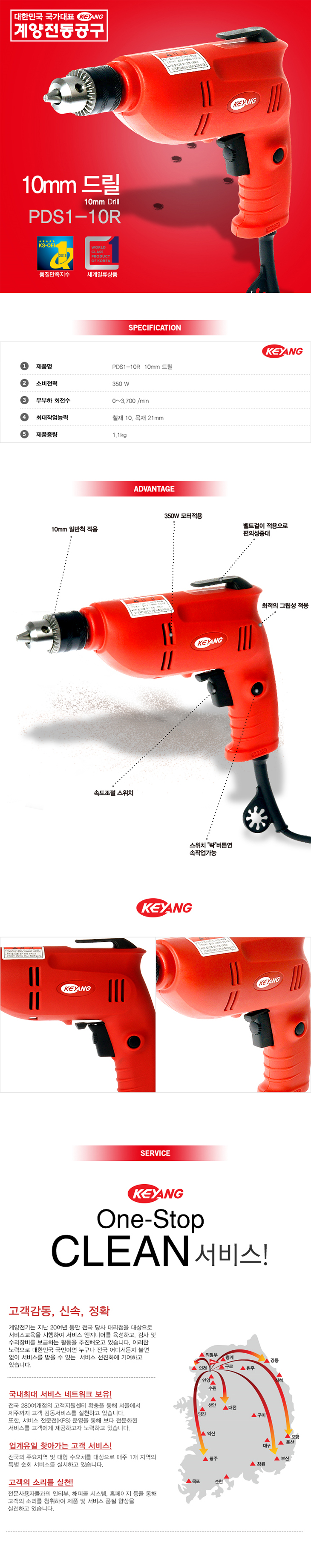 [°è¾ç] 10mm °í¼ÓÇü Àüµ¿µå¸±(PDS1-10R, 350Watt)(Electric Drill)