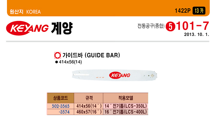 [°è¾ç] Àü±âüÀÎÅé °¡À̵å¹Ù(LCS-350L¿ë,14ÀÎÄ¡/350mm,414x56mm,1460Watt)(Electric Chain Saw Guide Bar)