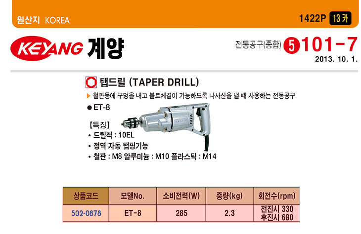 [°è¾ç] Àü±â Åǵ帱(ET-8,285Watt)(Tapper Drill)