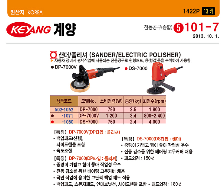 [°è¾ç] ¼ÓµµÁ¶ÀýÇü Àü±â Æú¸®¼Å/Æ÷¸®¼Å(DP-7000V,1200Watt)(Sander/Electric Polisher)