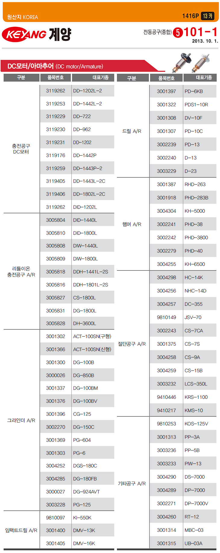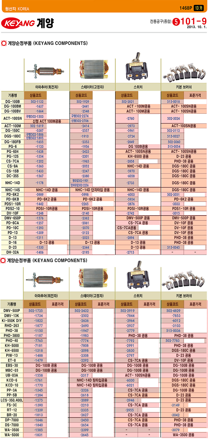 [°è¾ç] PHD-38 Àüµ¿°ø±¸ ¼ö¸®¿ë ¼øÁ¤ºÎǰ(Keyang Amature, Stator, Switch, Carbon Brush)