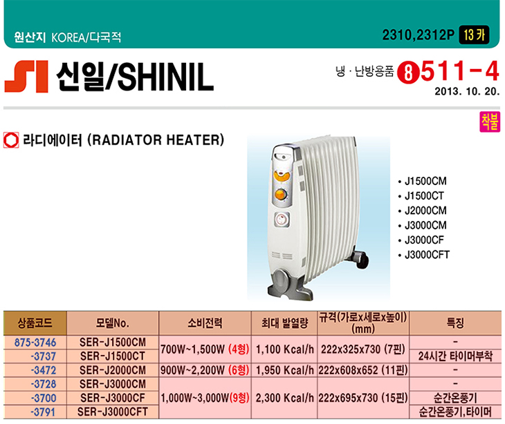 [½ÅÀÏ] ¶óµð¿¡ÀÌÅÍÈ÷ÅÍ(SER-TP15CM,7ÇÉ,700~1500Watt,222x325x730mm)(Radiator Heater)