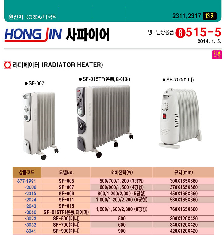 [È«Áø»çÆÄÀ̾î] ¹Ì´Ï ¶óµð¿¡ÀÌÅÍÈ÷ÅÍ(SF-900,9ÇÉ,900Watt,420x120x420mm)(Radiator Heater)=>Á¦Ç°´ÜÁ¾!