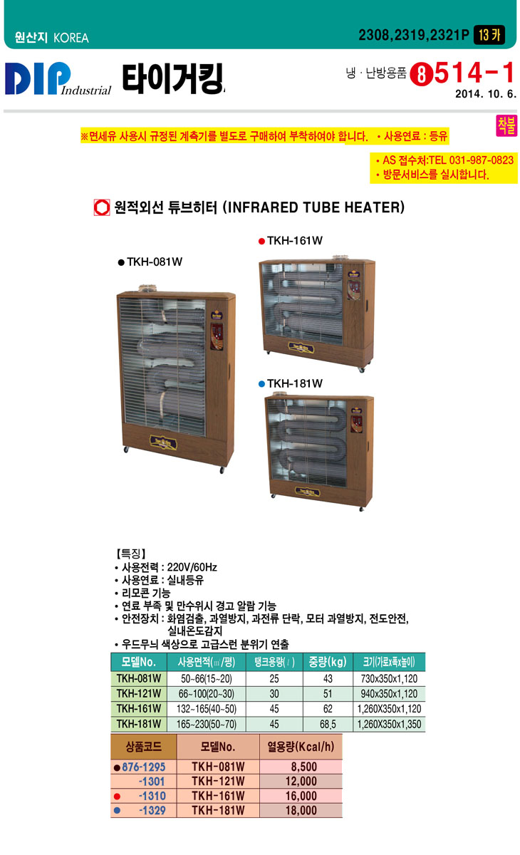 [ŸÀ̰ÅÅ·]¿øÀû¿Ü¼± Æ©ºêÈ÷ÅÍ(TKH-161W, 940x350x1120mm, 40~50Æò)(Infrared Tube Heater)(ÁÖ¹®Àü Àç°íÈ®ÀÎ)