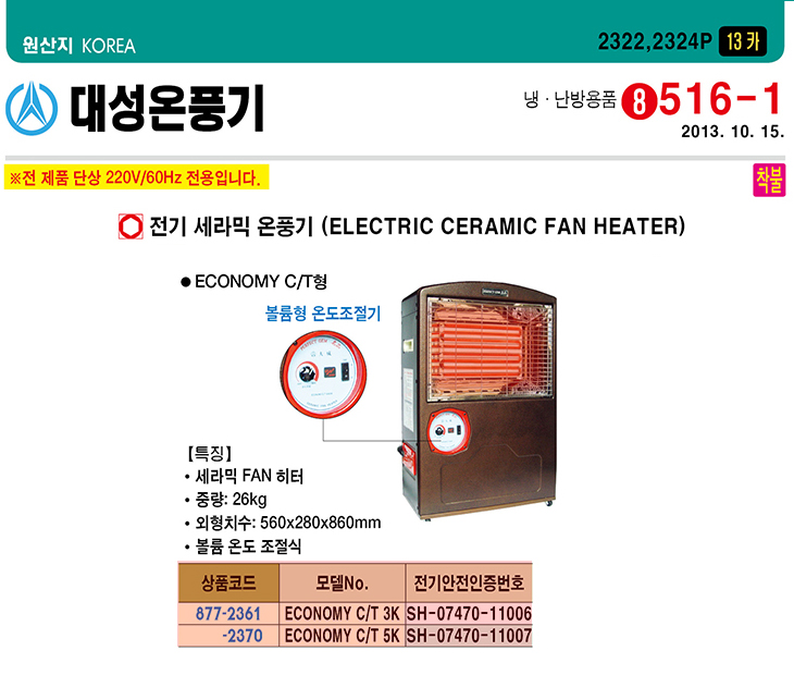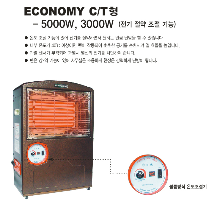 [´ë¼º¿Âdz±â] Àü±â¼¼¶ó¹Í ¿Âdz±â(ECONOMY C/T 5K, º¼·ýÇü ¿ÂµµÁ¶Àý±â, 5000Watt, 560x280x860mm)(Electric Ceramic Fan Heater)