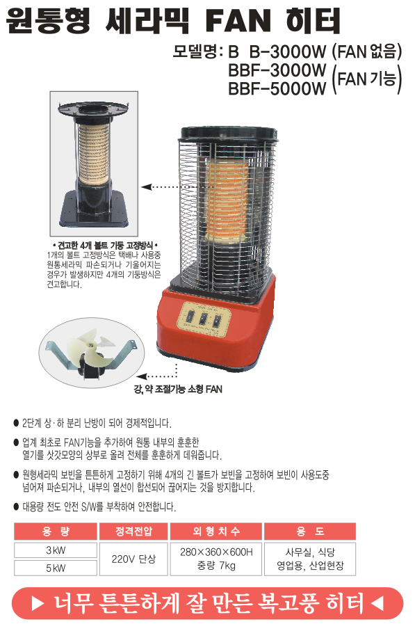 [´ë¼º¿Âdz±â] ¿øÅëÇü ¼¼¶ó¹Í FAN È÷ÅÍ(BBF-3000W, 280x360x600mm, 3000Watt)(Ceramic Fan Heater)
