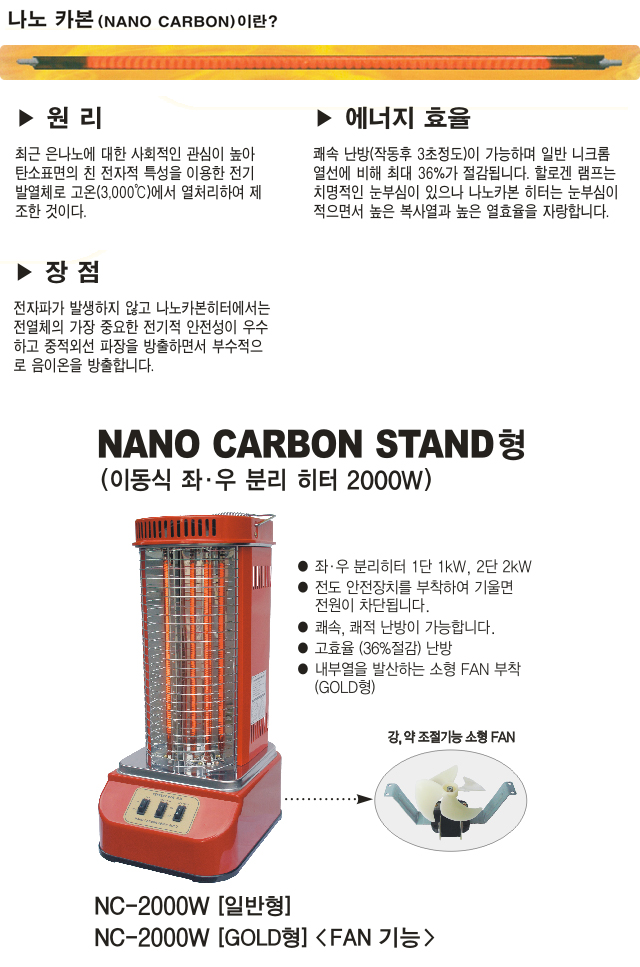 [´ë¼º¿Âdz±â] ³ª³ëÄ«º» ½ºÅÙµåÇü FAN È÷ÅÍ(NC-2000W(GOLD), 280x360x700mm, 2000Watt)(Nano Carbon Stand Fan Heater)
