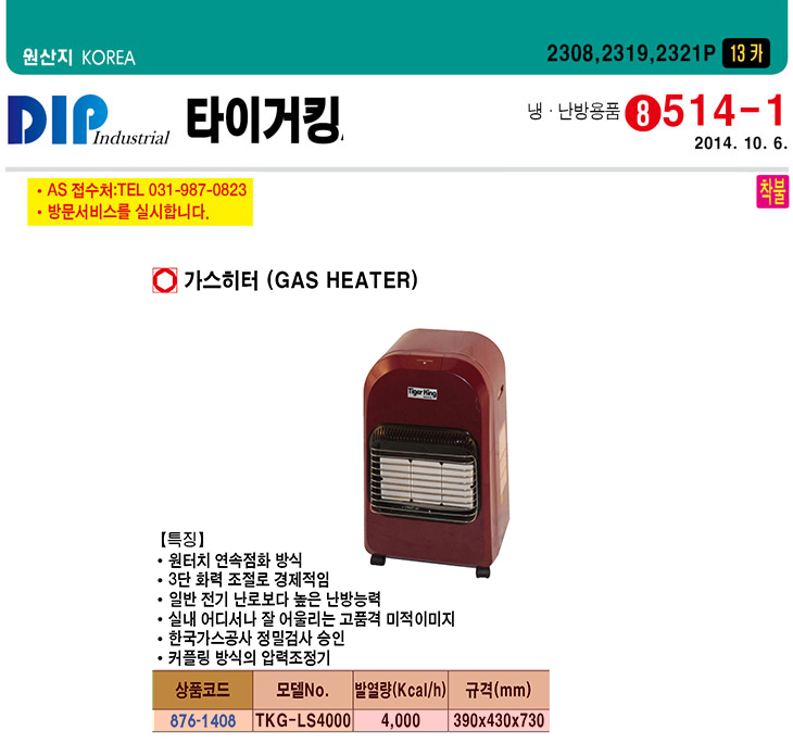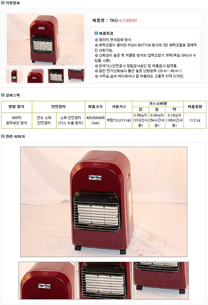 [ŸÀ̰ÅÅ·] °¡½ºÈ÷ÅÍ (TKG-LS4000, 4000Kcal/h, 420x500x695mm)(Gas Heater)