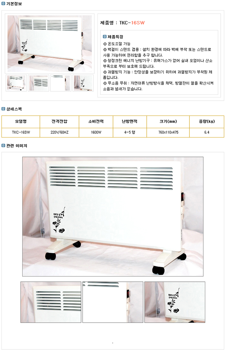 [ŸÀ̰ÅÅ·] ÄÁº¤¼Ç È÷ÅÍ-¶óµð¿¡ÀÌÅÍÇü(TKC-16SW, 1600Watt, 760x110x480mm)(Convection Heater)