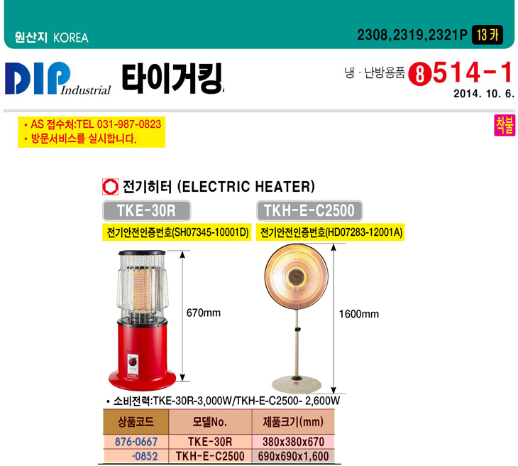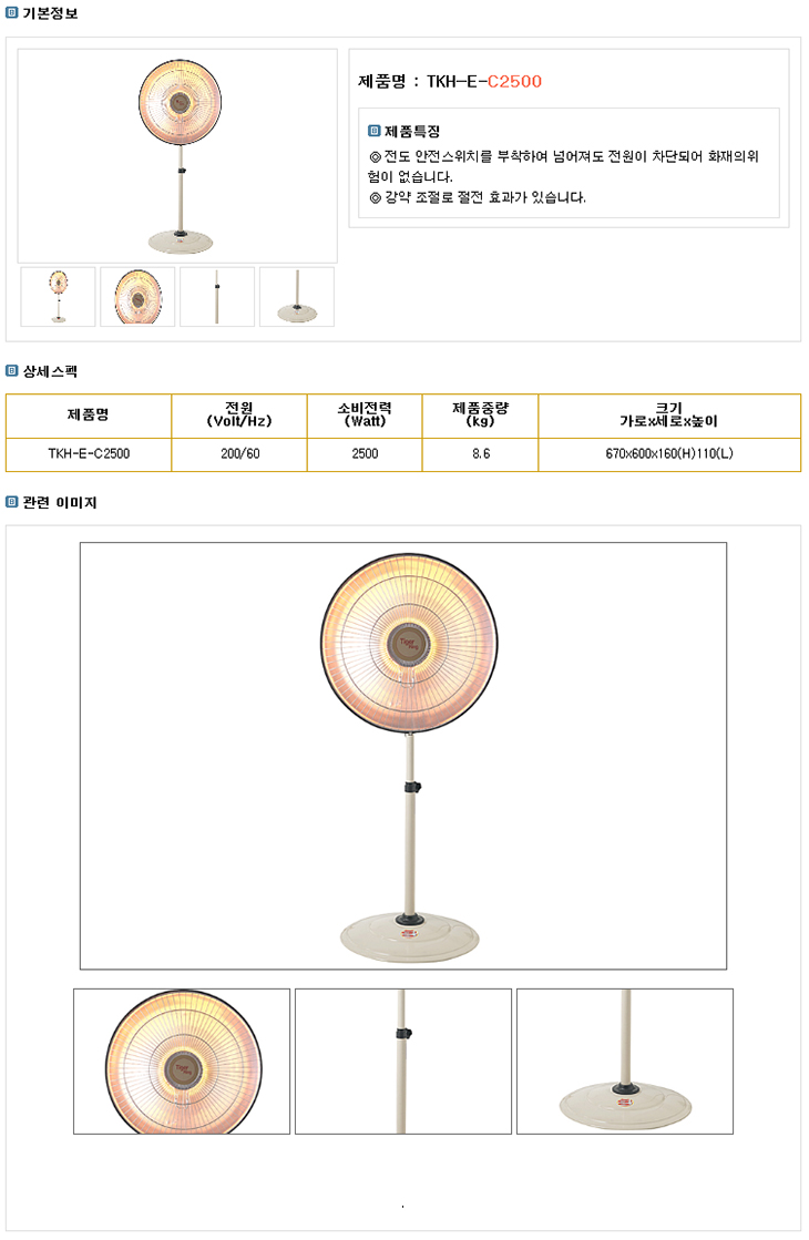 [ŸÀ̰ÅÅ·] Àü±âÈ÷ÅÍ(TKH-E-C2500, 2600Watt, 690x690x1600mm)(Electric Heater)