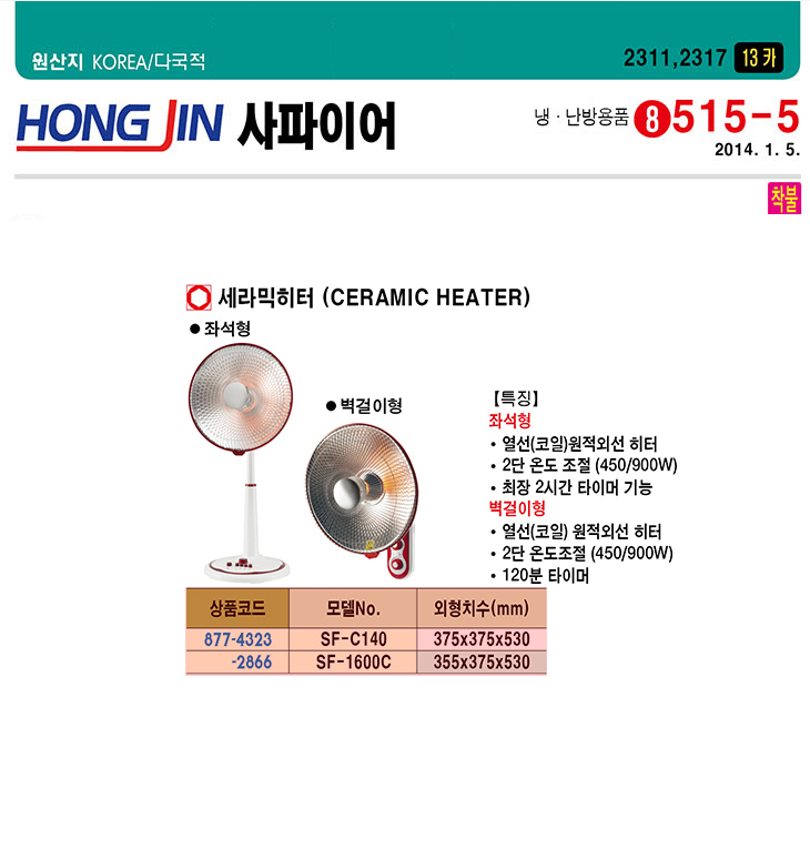 [È«Áø»çÆÄÀ̾î] ÇÒ·Î°Õ È÷ÅÍ(SF-H140, 375x375x530mm)(Halogen Heater)