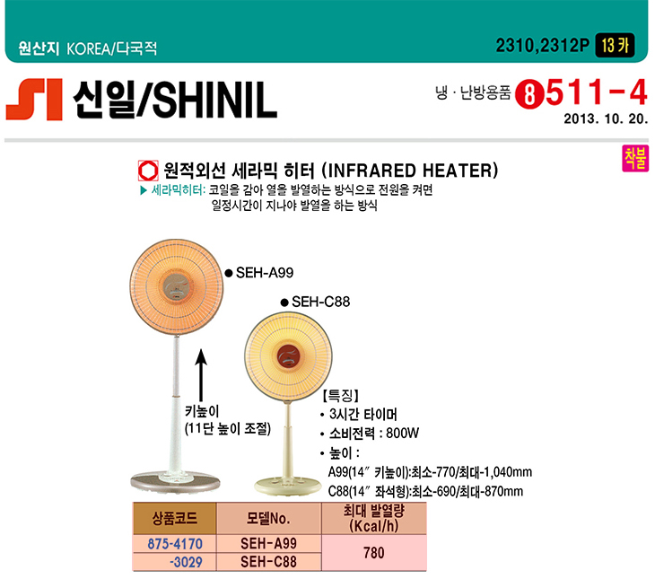 [½ÅÀÏ] ¿øÀû¿Ü¼± ¼¼¶ó¹ÍÈ÷ÅÍ(SEH-C140(R), 800Watt, 14ÀÎÄ¡ Ű³ôÀÌ)(Infrared Heater)