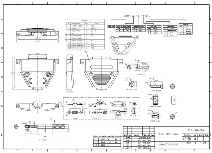 [WT] 37Pin Èĵå(Plastic Backshell Shell Cover Hood D-SUB for Data Cable DB37 37 pin)