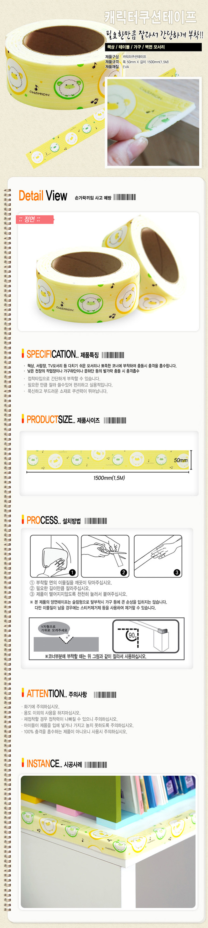 [LP]Å×ÀÌÇÁÇü ¸ð¼­¸®º¸È£(ij¸¯ÅÍÄí¼ÇÅ×ÀÌÇÁ,50mm x 1.5¹ÌÅÍ)(Safety cushion tape/Corner Guard/Edge protector)