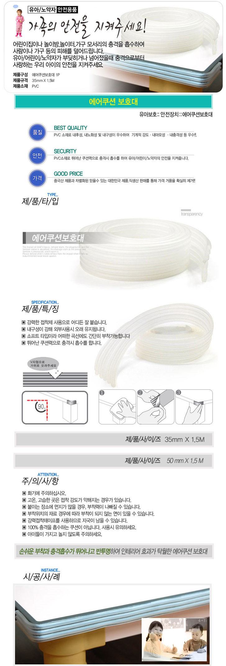 [LP]¸ð¼­¸®º¸È£´ë/Äڳʺ¸È£´ë(PVC ¿¡¾îÄí¼Çº¸È£´ë,1.5¹ÌÅÍ/Åõ¸í)(¾ç¸éÅ×ÀÌÇÁ Á¢Âø)