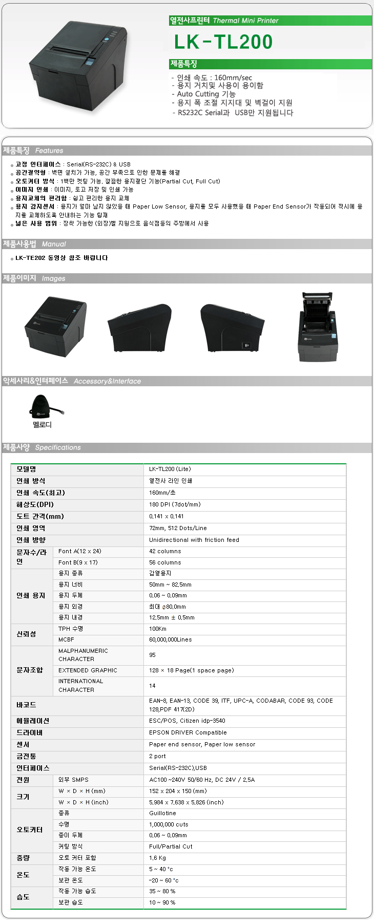 [WT] ¿­Àü»ç ¿µ¼öÁõ ÇÁ¸°ÅÍ(LK-TL200, Àμâ¼Óµµ :160mm/Sec, 180DPI)