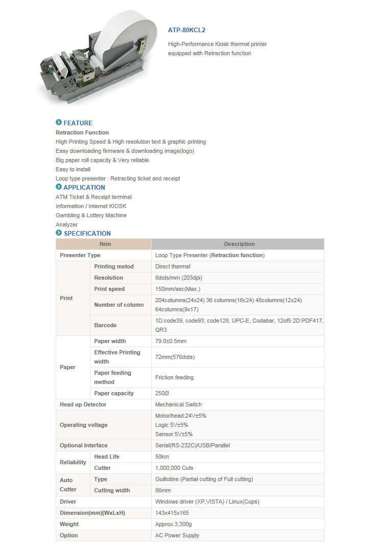 [WT] KIOSK ¿­Àü»ç ÇÁ¸°ÅÍ(ATP-80KCL2)