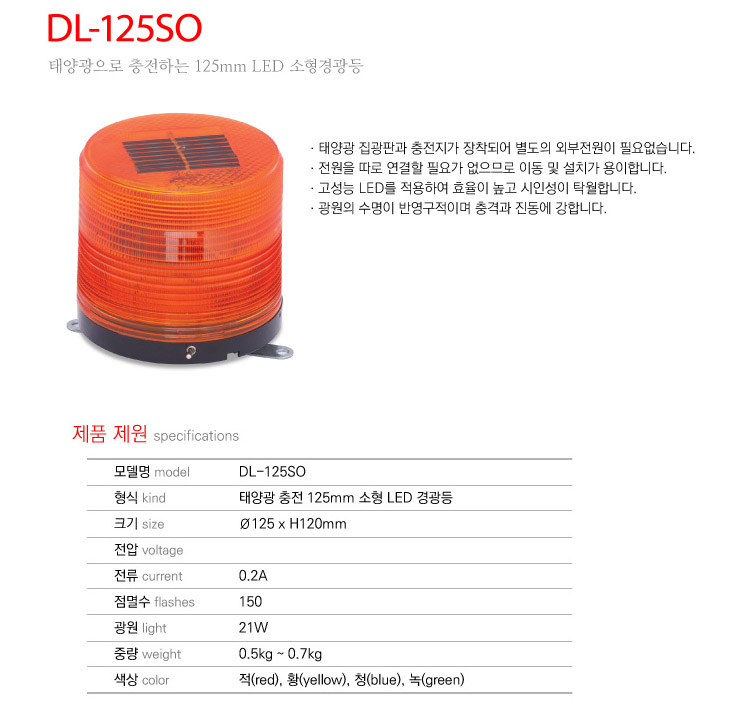 [´ë´ö] 125¨ª ž籤 ÃæÀü LED ¼ÒÇü°æ±¤µî(DL-125SO)