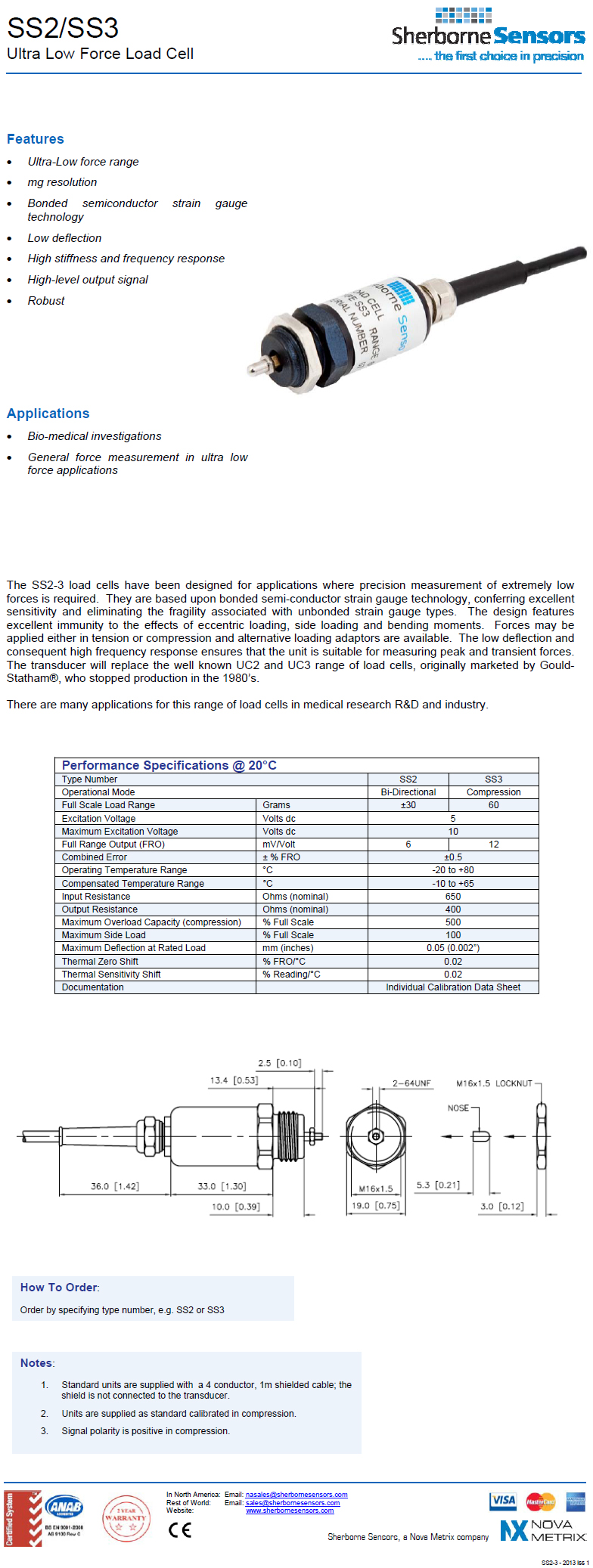 [Sherborne Sensors] ÃÊÁ¤¹Ð ¾ÐÃà ·Îµå¼¿/Æ®·£µà¼­(SS3 Ultra Low Range Compression Force Transducer)