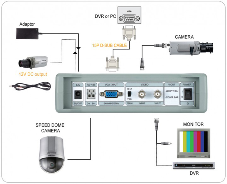ÈÞ´ë¿ë ¸ð´ÏÅÍ. COAX Remote Countrol ±â´É(PELCO-C ÇÁ·ÎÅäÄÝ, A1-CCVC)ÀÌ Å¾ÀçµÇ¾î µ¿ÃàÄÉÀ̺í·Î Ä«¸Þ¶ó OSD ¸Þ´º¿Í PTZ Á¦¾î°¡ °¡´É. |