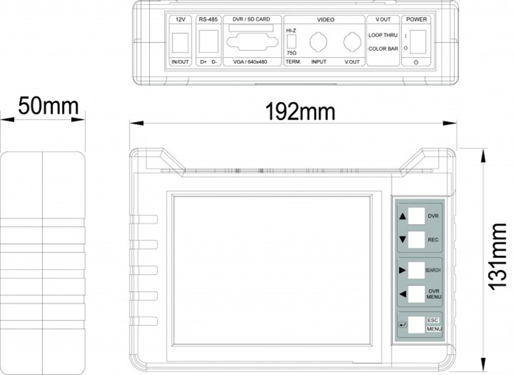 192(W) × 131.25(H) × 50(D)mm |