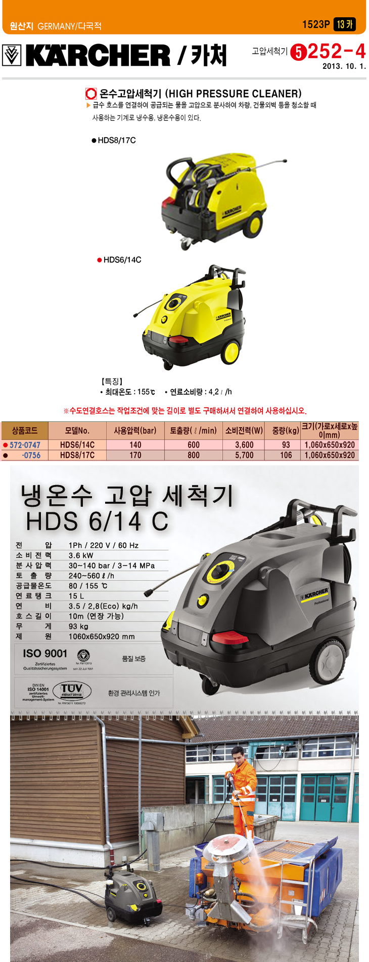[īó] ¿Â¼ö °í¾Ð¼¼Ã´±â(HDS6/14C, 140Bar)(High Pressure Cleaner)(ÁÖ¹®Àü °ßÀû¹®ÀÇ)