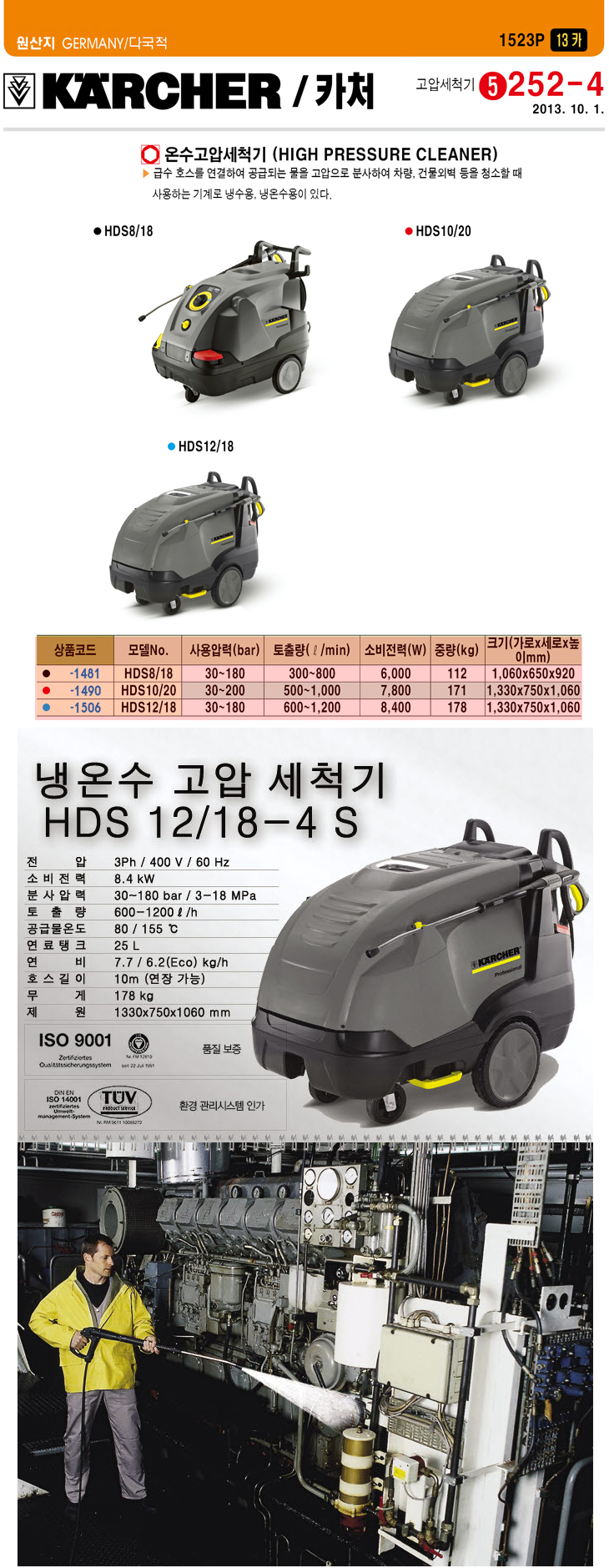 [īó] ¿Â¼ö °í¾Ð¼¼Ã´±â(HDS12/18, 180Bar)(High Pressure Cleaner)(ÁÖ¹®Àü °ßÀû¹®ÀÇ)