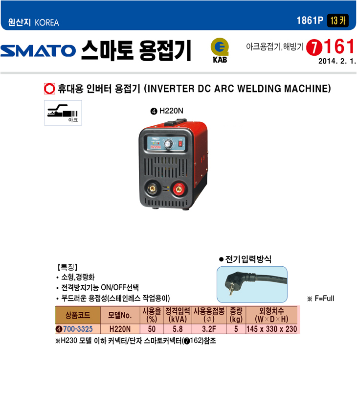 [SMATO] ÈÞ´ë¿ë ÀιöÅÍ ¿ëÁ¢±â(H220N, 5.8kVA)(Inverter DC ARC Welding Machine)