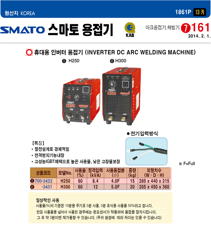 [SMATO] ÈÞ´ë¿ë ÀιöÅÍ ¿ëÁ¢±â(H300, 12.0kVA)(Inverter DC ARC Welding Machine)