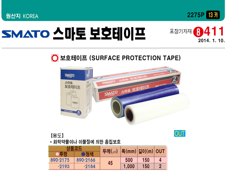 [SMATO] ½º¸¶Åä û»ö º¸È£Å×ÀÌÇÁ(0.045mm x 250mm x 150¹ÌÅÍ)(Surface Protection Tape)