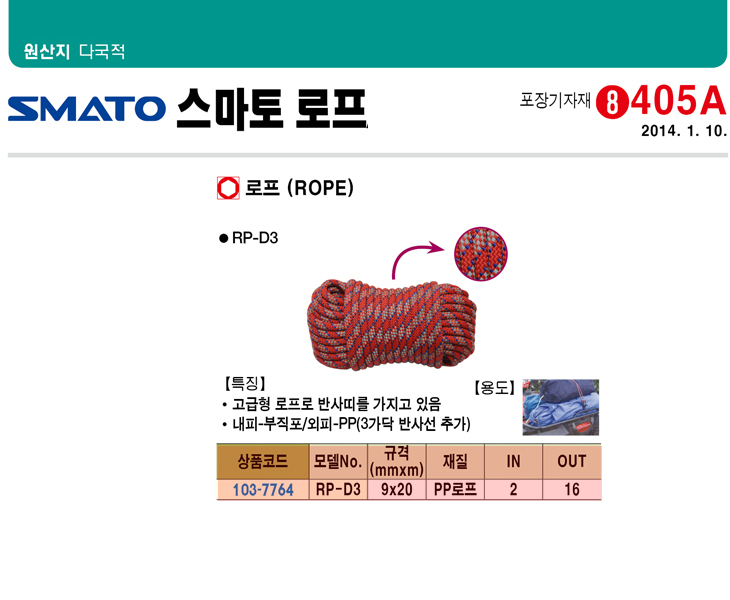 [SMATO] ½º¸¶Åä ·ÎÇÁ(RP-D3, Á÷°æ 8mm, ±æÀÌ 20¹ÌÅÍ, ¹Ý»ç¶ìºÎÂø PP·ÎÇÁ)