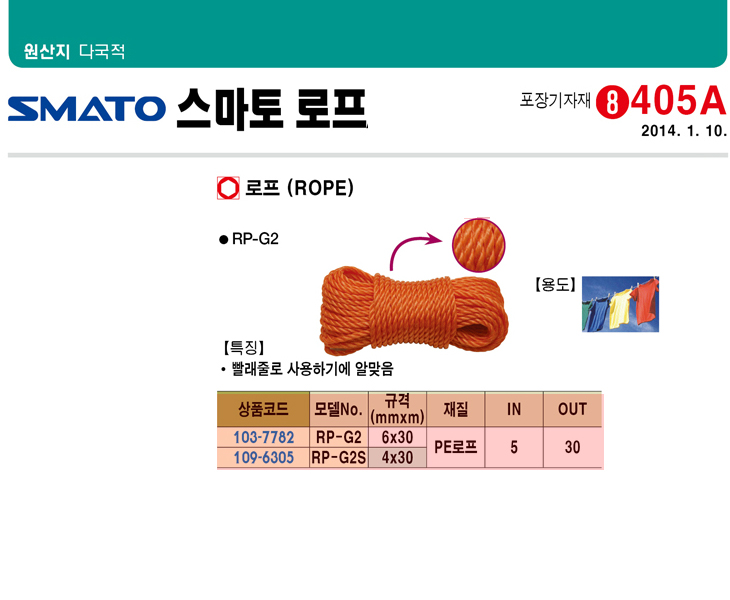 [SMATO] ½º¸¶Åä ·ÎÇÁ(RP-G2S, Á÷°æ 4mm, ±æÀÌ 30¹ÌÅÍ, PE·ÎÇÁ/»¡·¡ÁÙ ·ÎÇÁ)